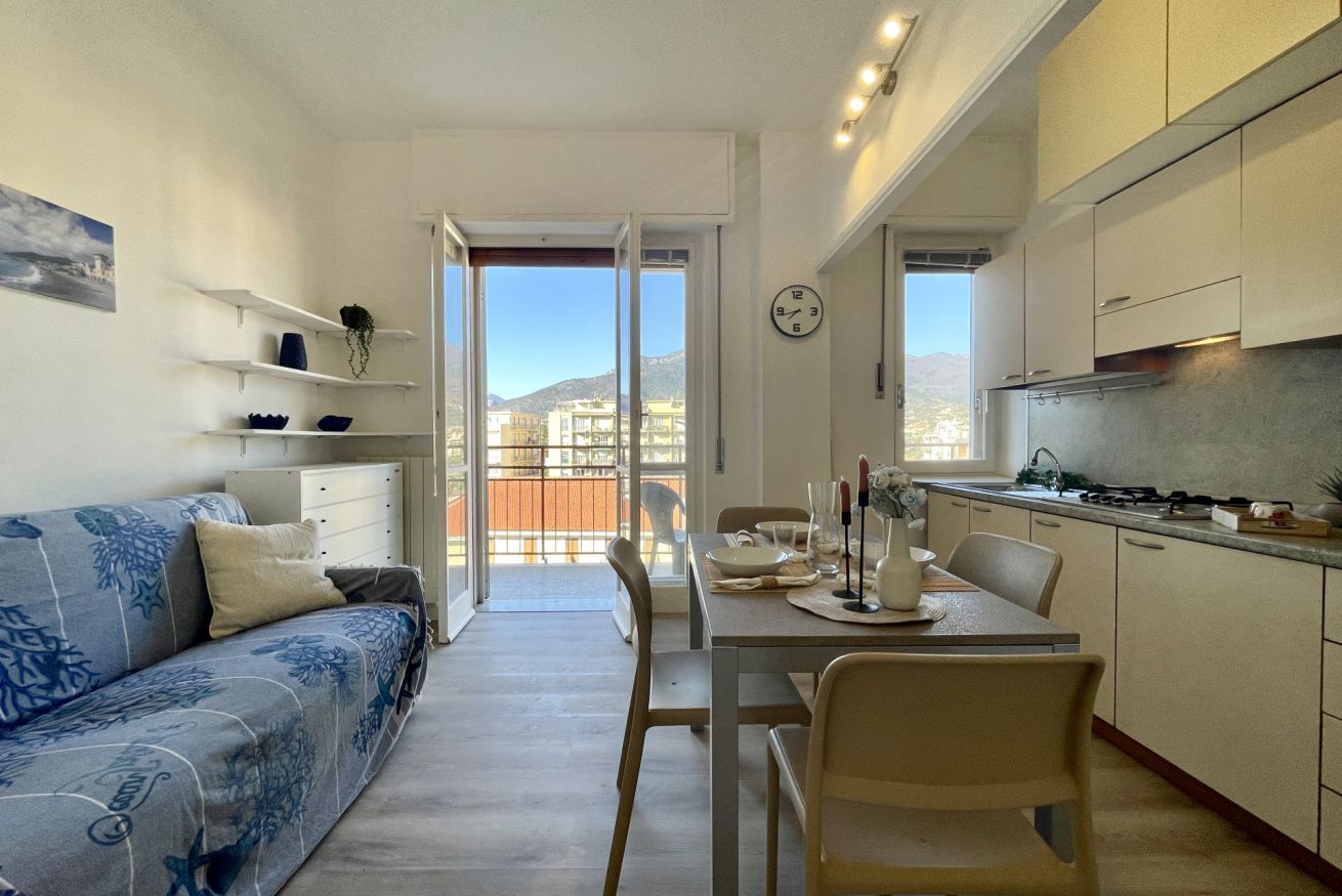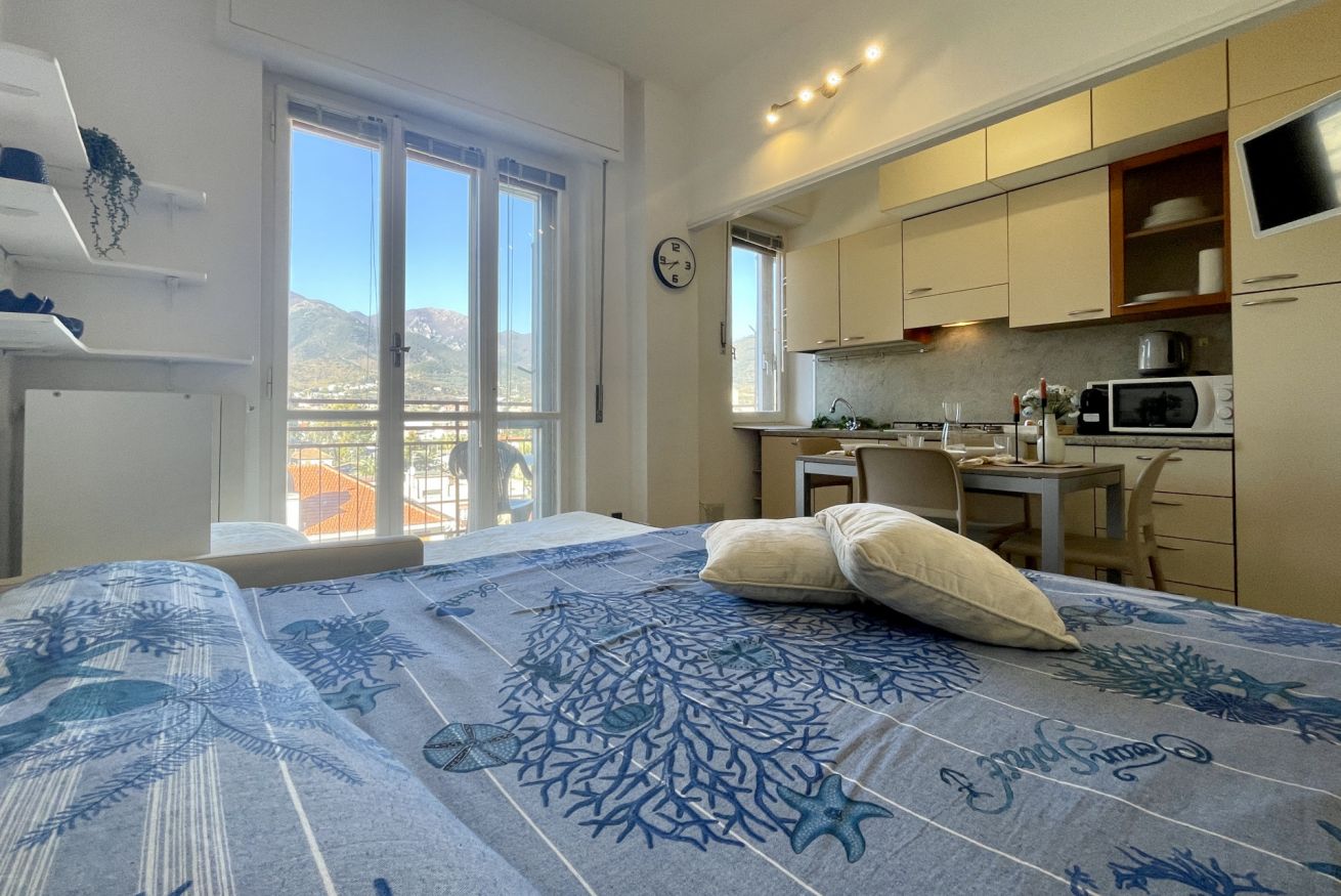 Spazio unico con divano letto, letto singolo e accesso diretto al balcone, ideale per rilassarsi dopo una giornata al mare.