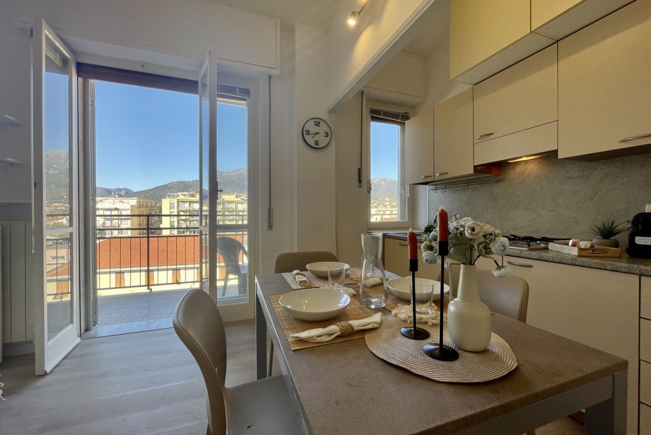 L’appartamento si trova al sesto piano con ascensore ed è un monolocale luminoso con ampio balcone.