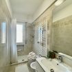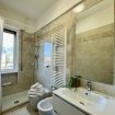 Bagno completo con box doccia, asciugacapelli e sanitari.