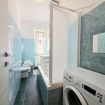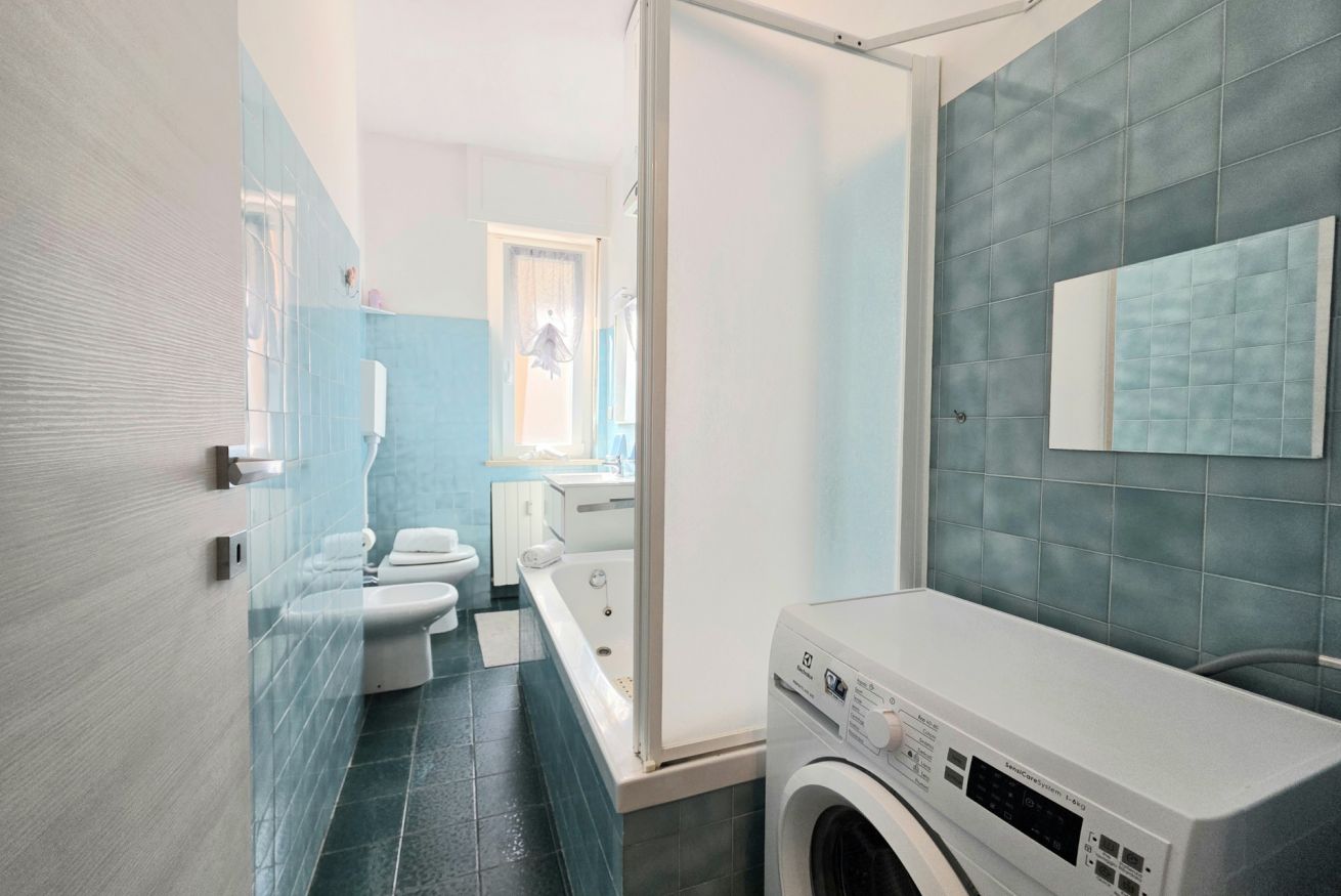 Completo di vasca da bagno, asciugacapelli, lavatrice e sanitari.