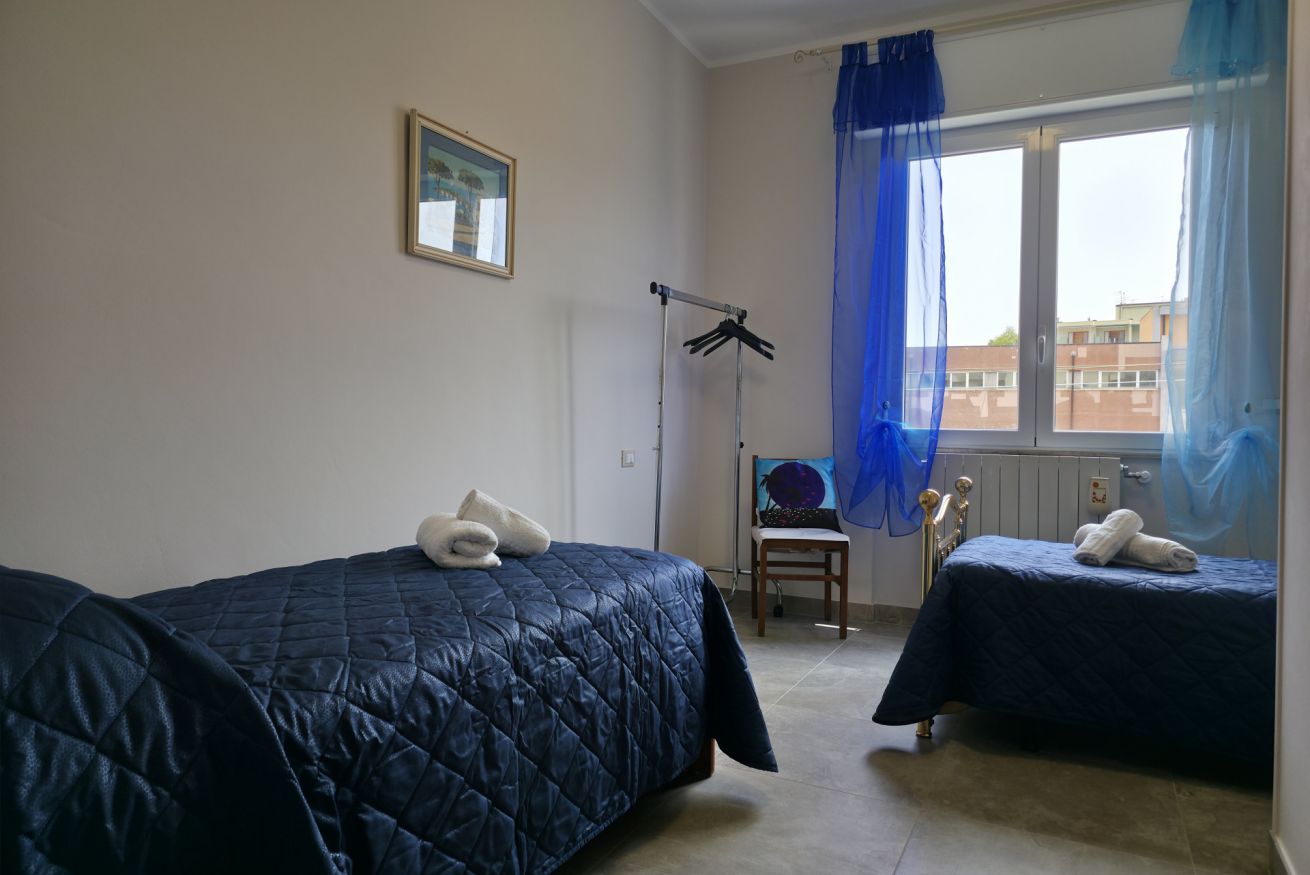 2 letti singoli, appendiabiti, comodino con abat-jour e finestra luminosa.