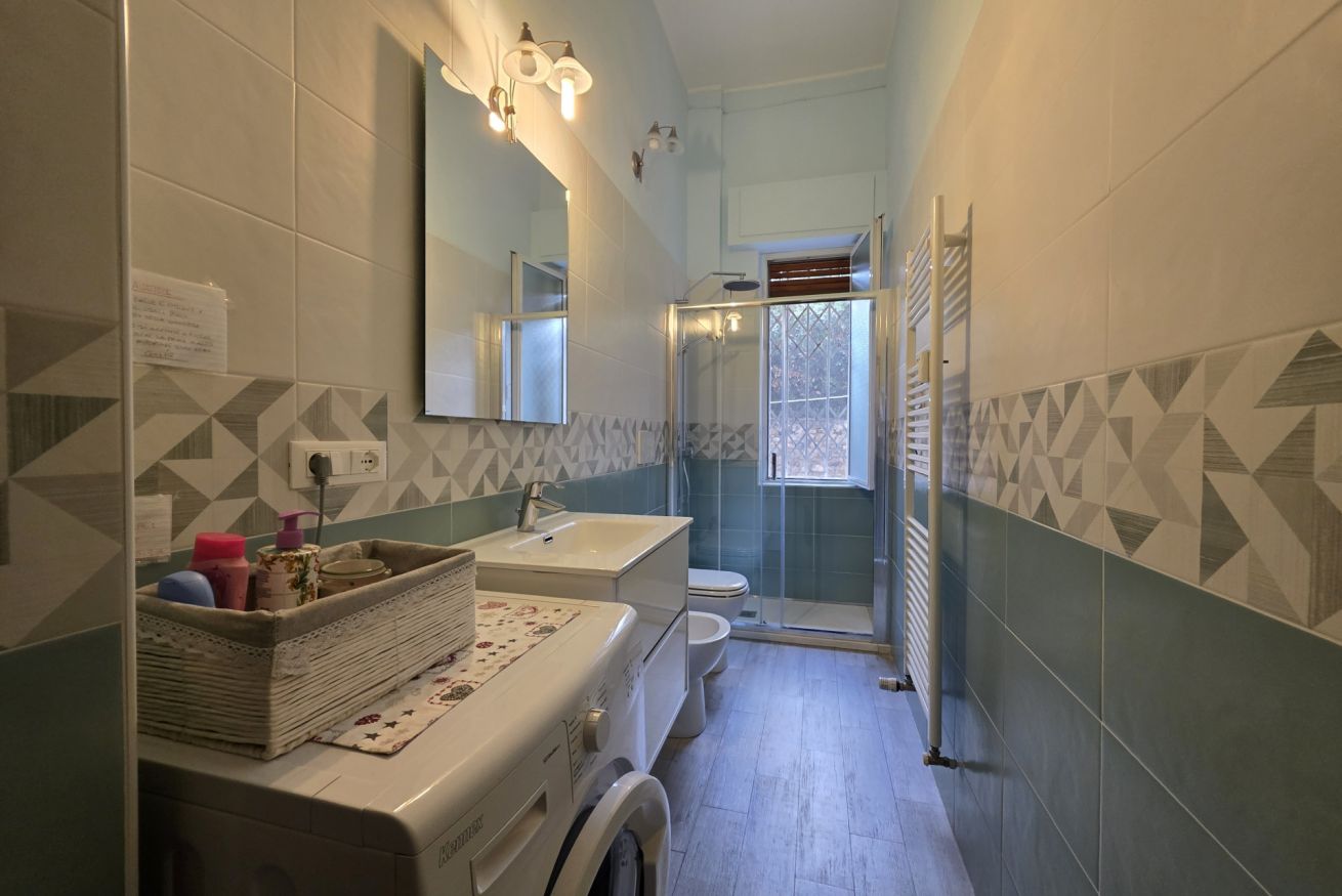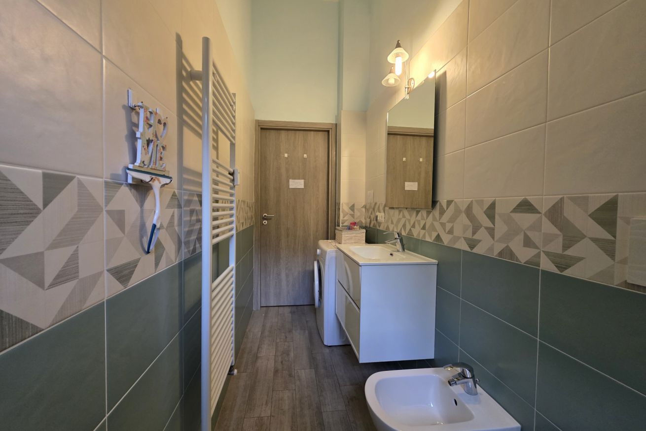 Con box doccia, asciugacapelli, lavatrice e sanitari completi.