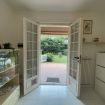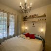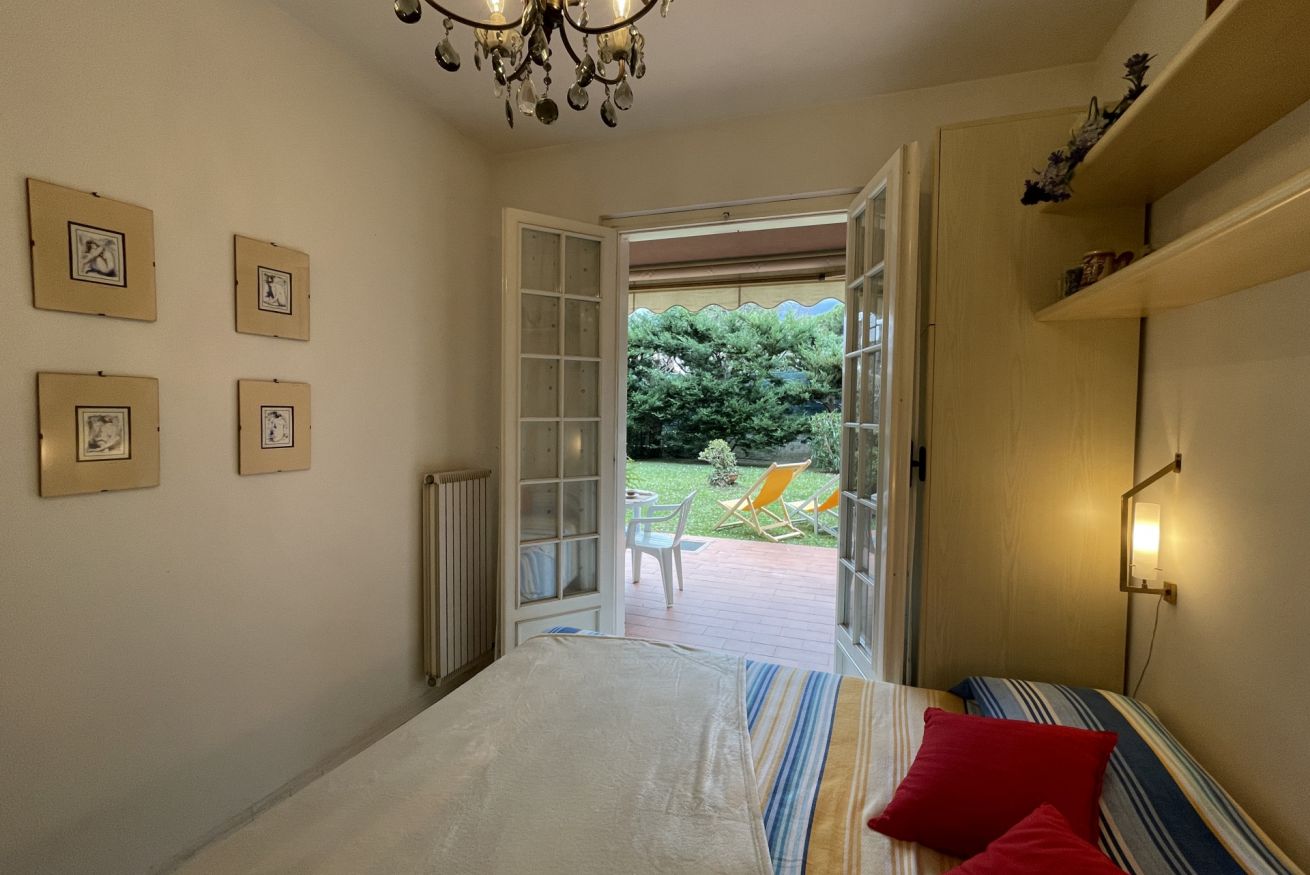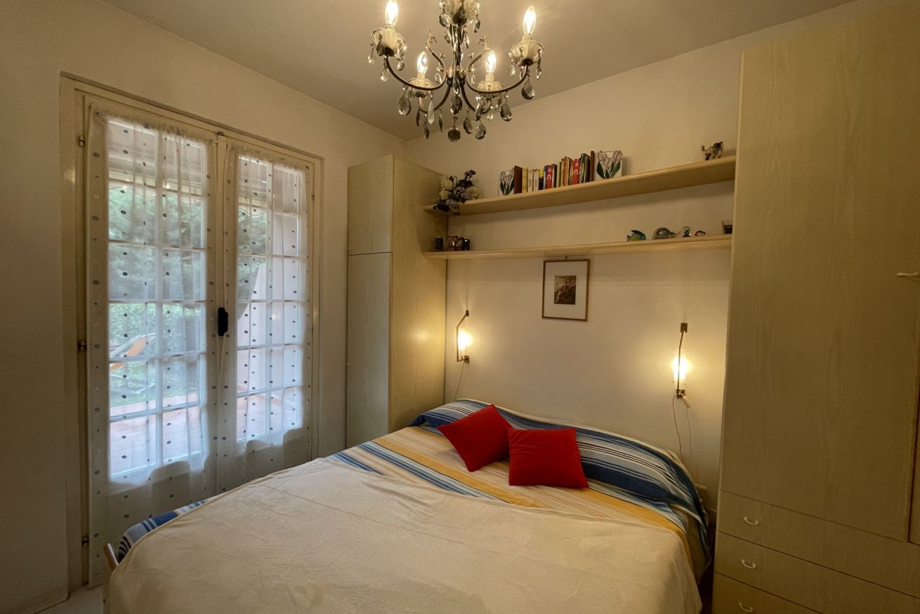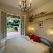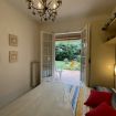 Camera matrimoniale con letto doppio, armadio e porta-finestra che conduce direttamente al giardino.