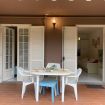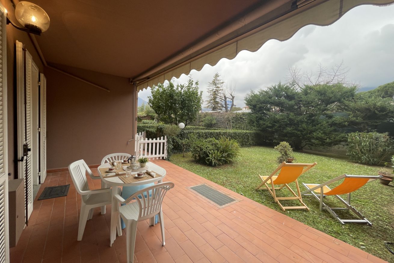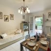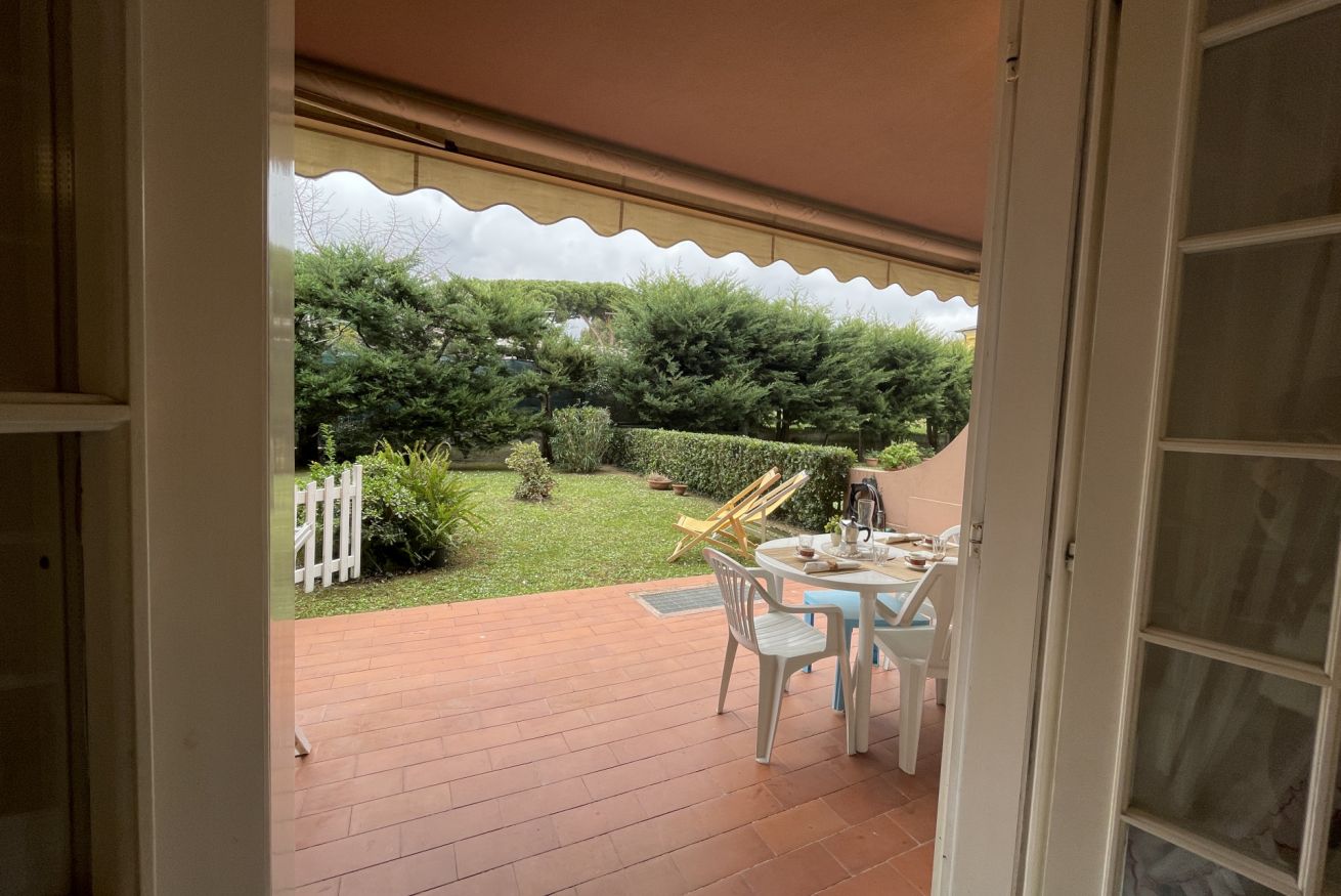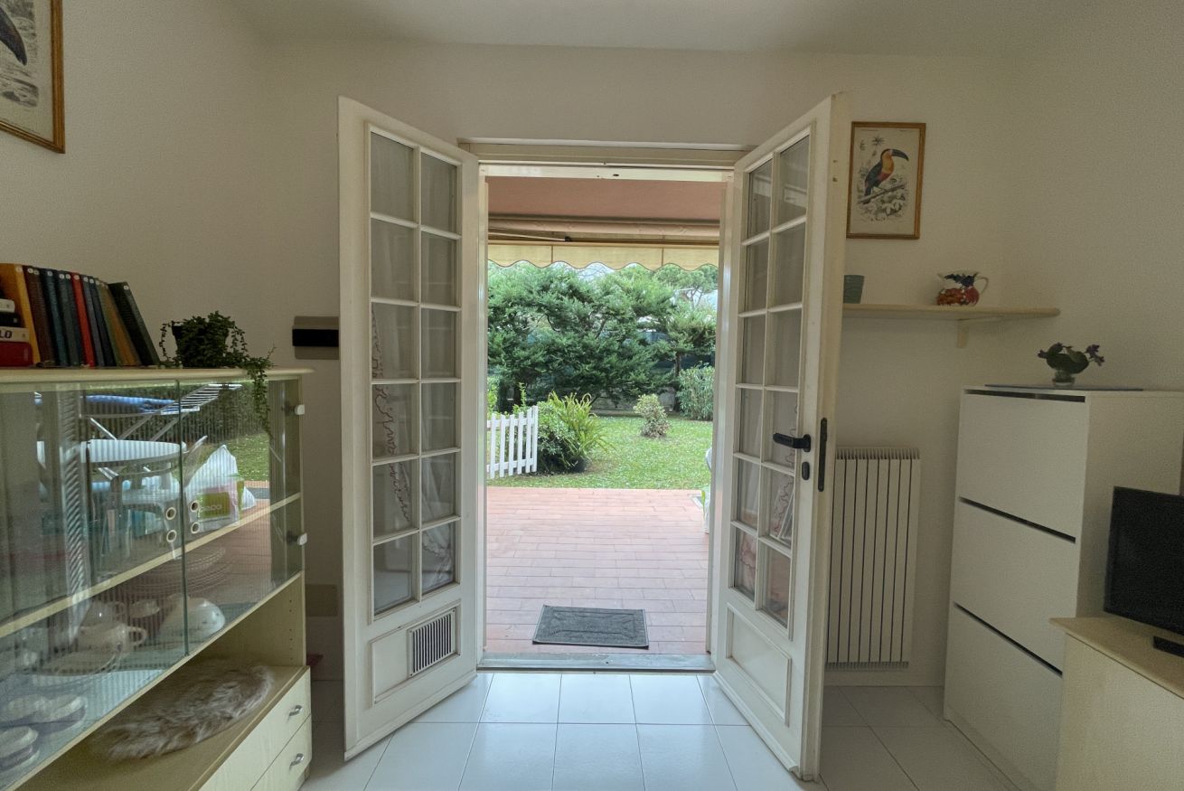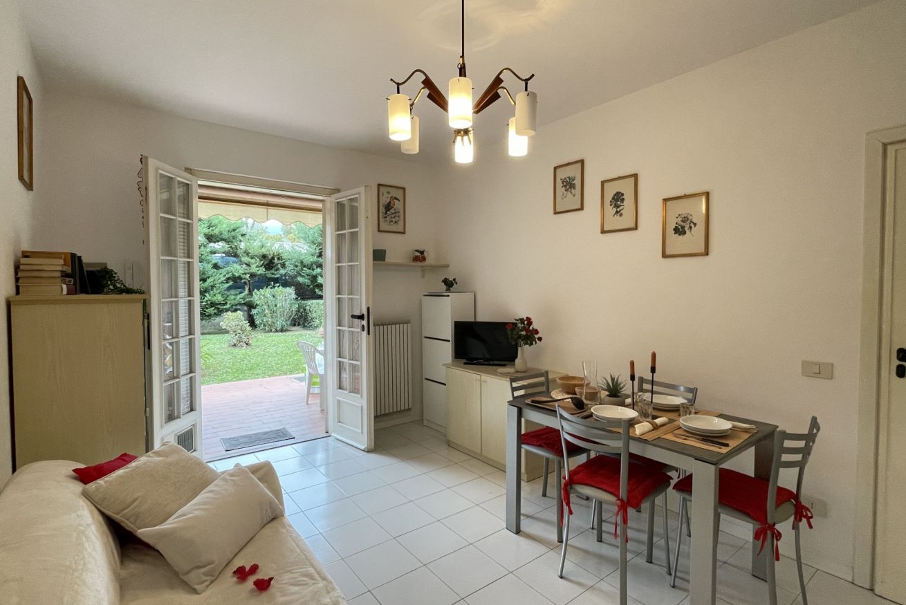 Dotato di tavolo da pranzo per 4 persone, divano, TV e accesso al giardino tramite porta-finestra.