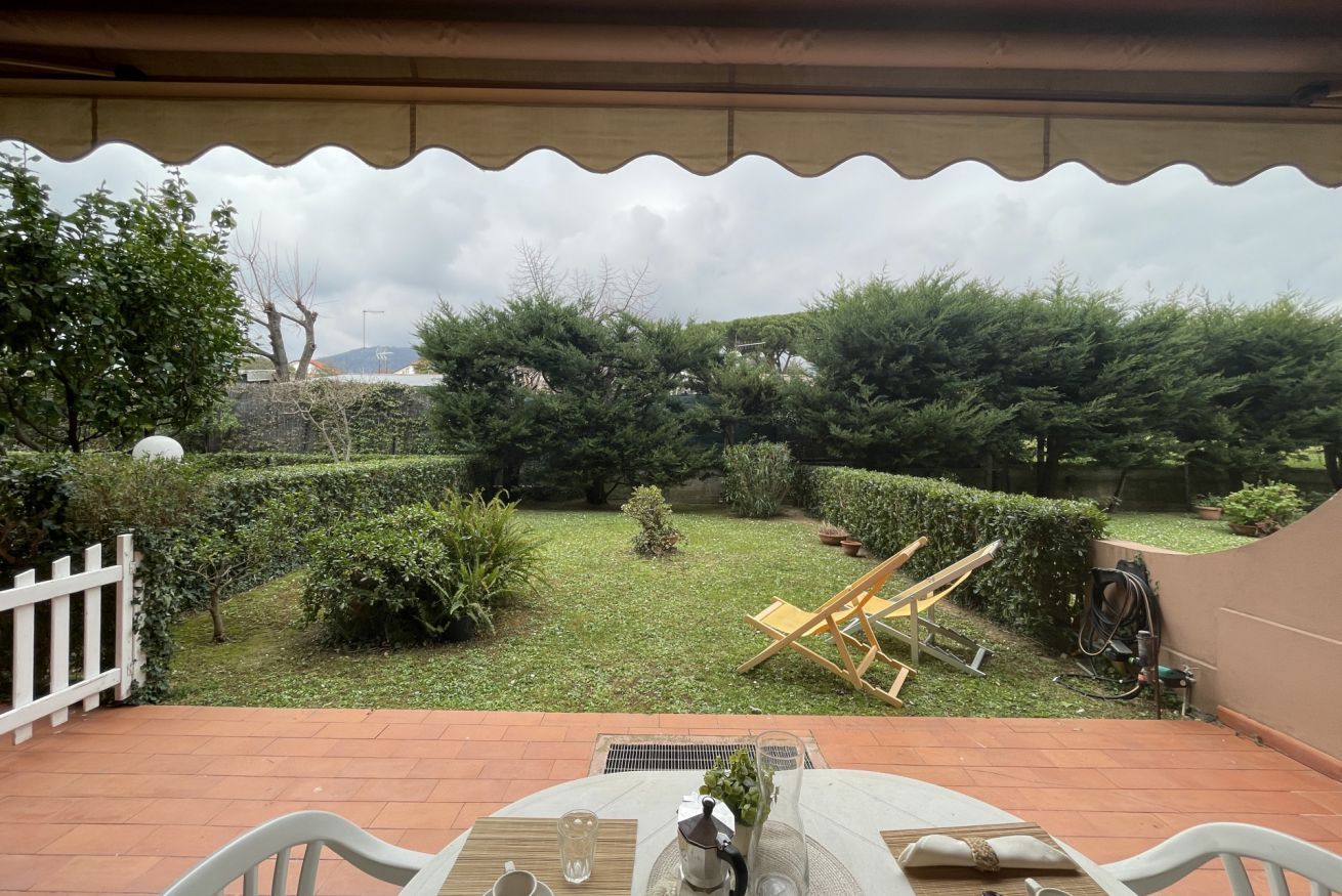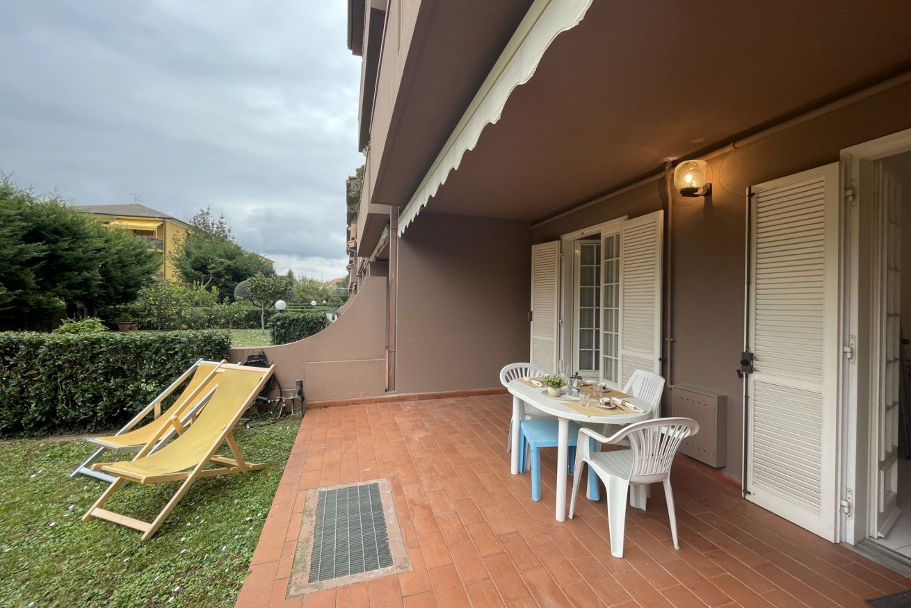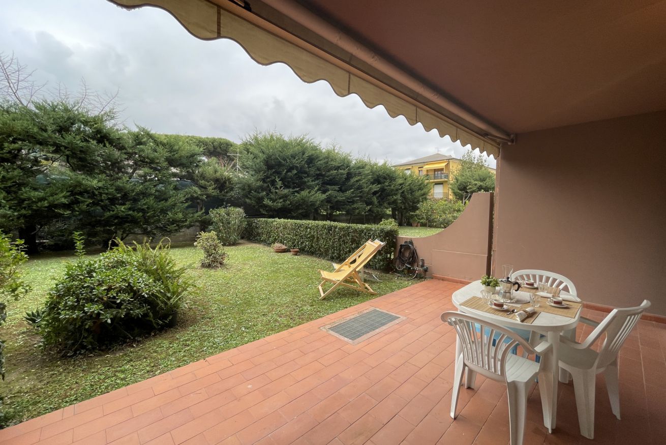 Ampio giardino privato recintato, con una zona piastrellata e una parte in erba: perfetto per rilassarsi all’aperto e ideale anche per bambini e animali.